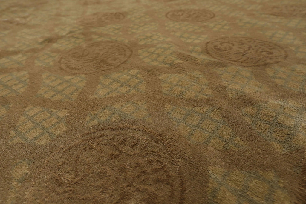 This is a beautiful Moss, Brown, Blue, Muted Earth Tones Color Designer Hand Knotted Tibetan Oriental Wool & Silk Rug. Its elegant style is easy to decorate with and perfect for living room, dining room, bed room or anywhere in the residence or office.