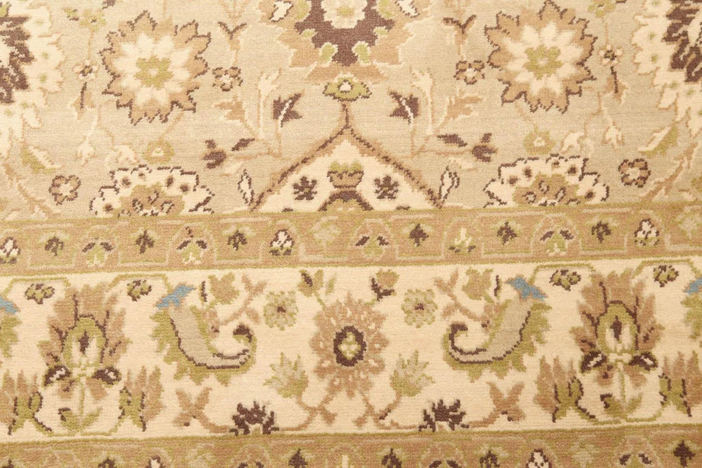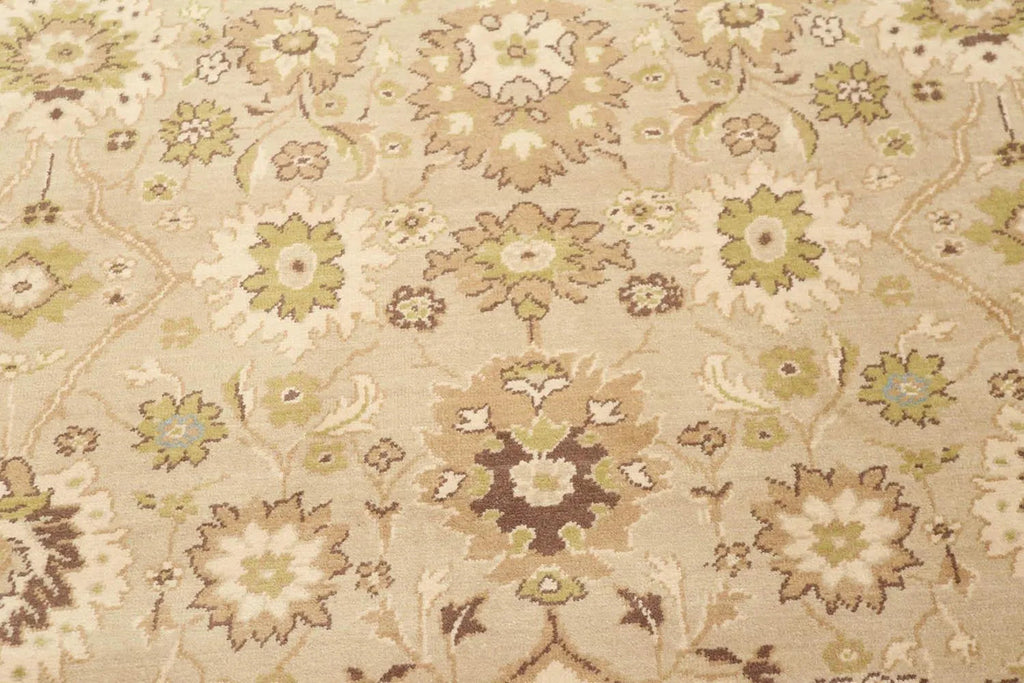 This is a beautiful 9'x12' Brown, Dirty Beige, Light Green, Turquoise, Multi Color Hand Knotted Wool Rug from India. Its elegant style is easy to decorate with and perfect for living room, dining room, bed room or anywhere