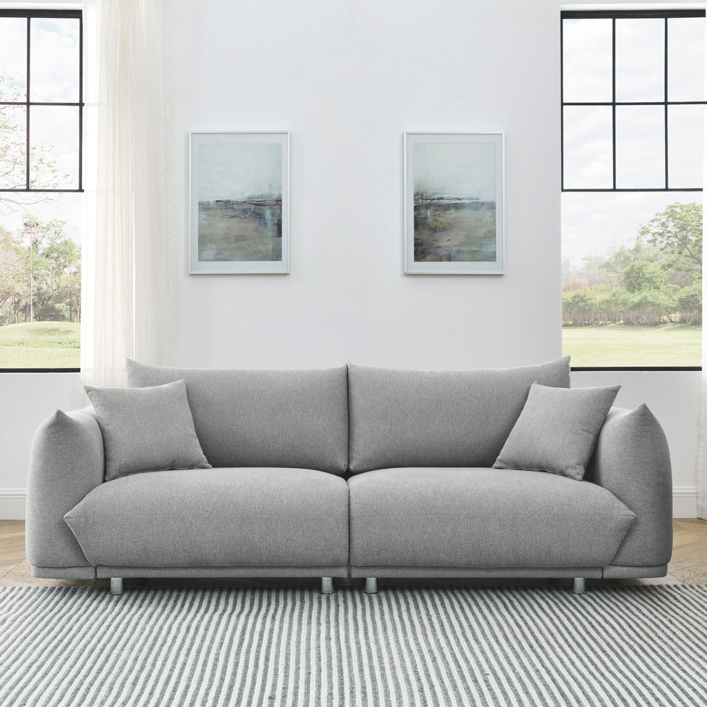 [Removable pillows and thick seat cushions] Softness is one of the most important features a sofa should have. The sofa's seat and back are filled with thick foam. Pocketed springs inside the seat add elasticity. The soft fabric is skin-friendly. The comfort certainly makes the sofa ideal for relaxation, creating a supportive base for long hours of sitting.