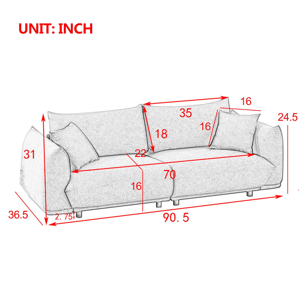 [Space] Overall size: 90.5 "W x 36.5 "D x 31 "H. This sofa is suitable for living room, bedroom, reading, watching movies or drinking coffee.