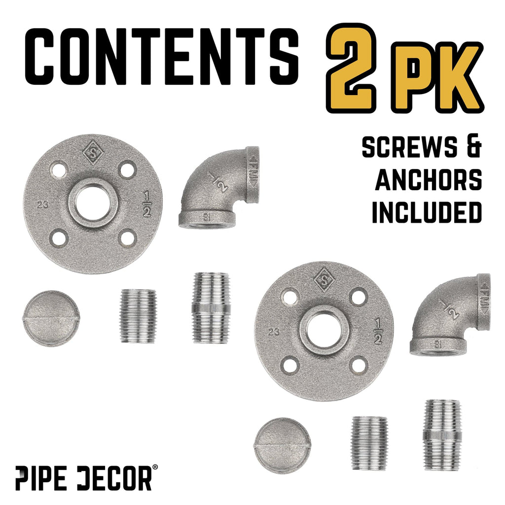 Add a vintage touch to your home decor! These pipe hooks are the perfect accent pieces for any room of the house. Our kit allows you to easily add a handcrafted touch to your home without much effort. Step-by-step instructions are included for your convenience. Industrial pipe pairs wonderfully with exposed brick, wood, and a variety of color palettes. Mix and match with different designs—we offer a full line of pipe hooks for you to choose from! Our pipes come coated with a protective oil to prevent rust during transit. We recommend wearing gloves to clean each piece. Coat with metal polish or clear coat to prevent rusting.
