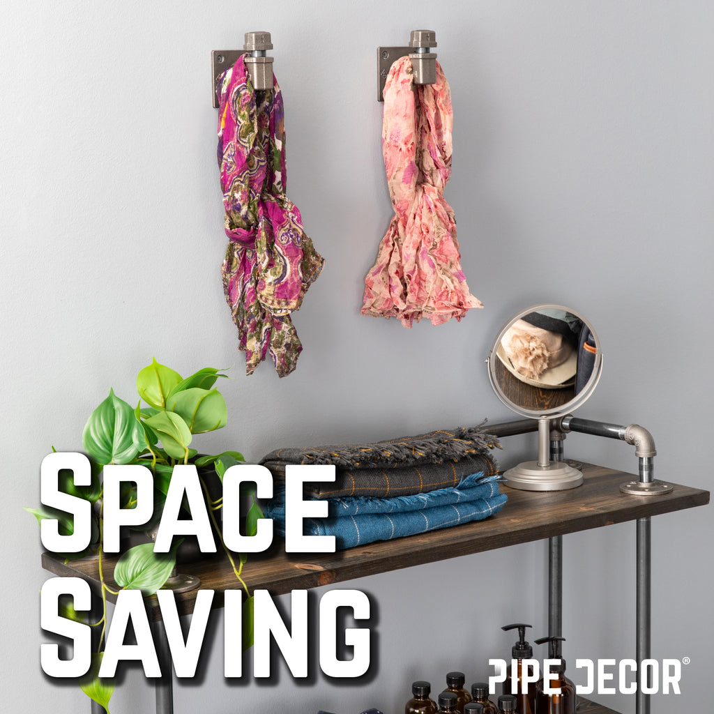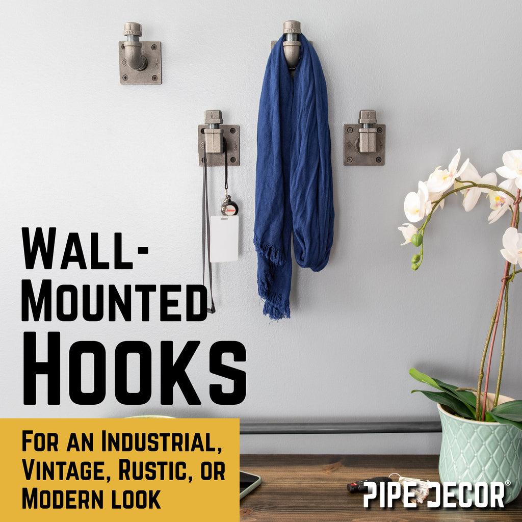 Add a vintage touch to your home decor! These pipe hooks are the perfect accent pieces for any room of the house. Our kit allows you to easily add a handcrafted touch to your home without much effort. Step-by-step instructions are included for your convenience. Industrial pipe pairs wonderfully with exposed brick, wood, and a variety of color palettes. Mix and match with different designs—we offer a full line of pipe hooks for you to choose from! Our pipes come coated with a protective oil to prevent rust during transit. We recommend wearing gloves to clean each piece. Coat with metal polish or clear coat to prevent rusting.