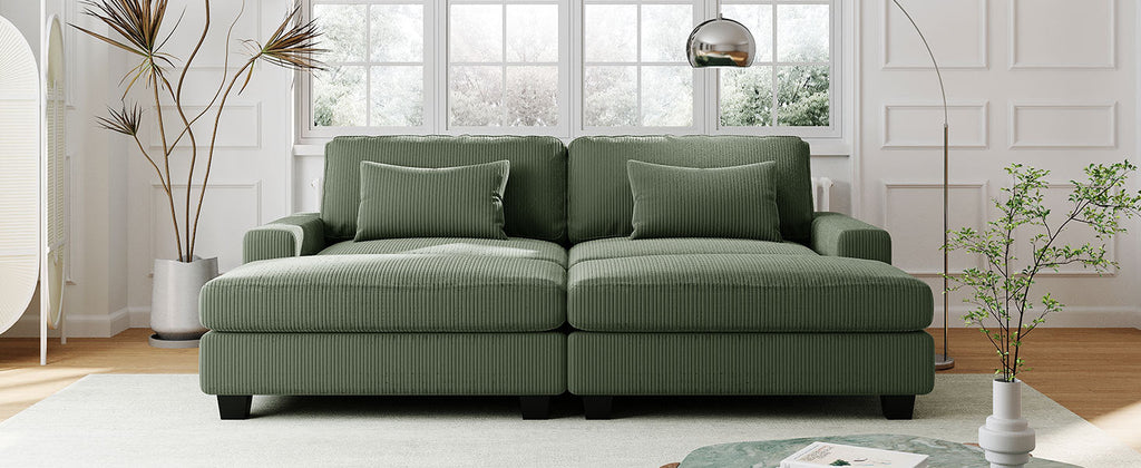 - Versatile Design: This sofa features two detachable ottomans that seamlessly combine to form a bed, providing flexible seating and sleeping options for your living space.