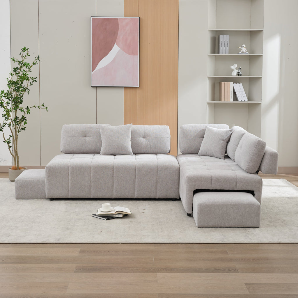 - Space-saving Sofa - This sofa is equipped with two hidden stools under the sofa, which can be movable. When you need to use them, you can just pull them out. Moreover, they can be easily stowed away when not in used. It helps to keep your floor clutter free and bumps free floor.