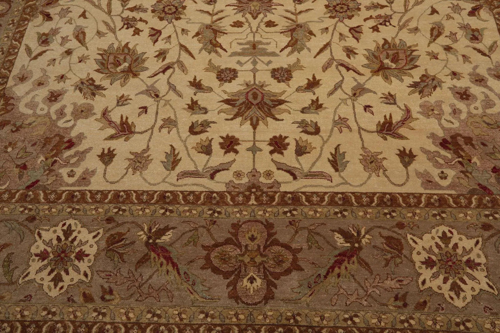 Cosmopolitan and sophisticated in look, the rug has been handcrafted by artisans to a flawless composition. The main field comprising highly stylized floral and botanical elements is encompassed by a handsome border. The design of the border compliments the inner field and adds gentle grandeur to the artful composition of the rug. This rug representing an illustrious legacy of exquisite artistry and intricate craftsmanship is primed to add visual glamor and class to its surroundings. Its soft texture and timeless design make it ideal to enhance any space where it is placed.