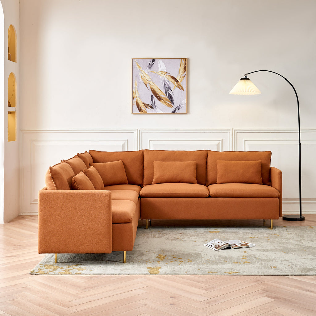 92"Teddy Fabric Sofa, Modern Corner Sectional Sofa with Support Pillow for Living room, Apartment & Office.(Orange)