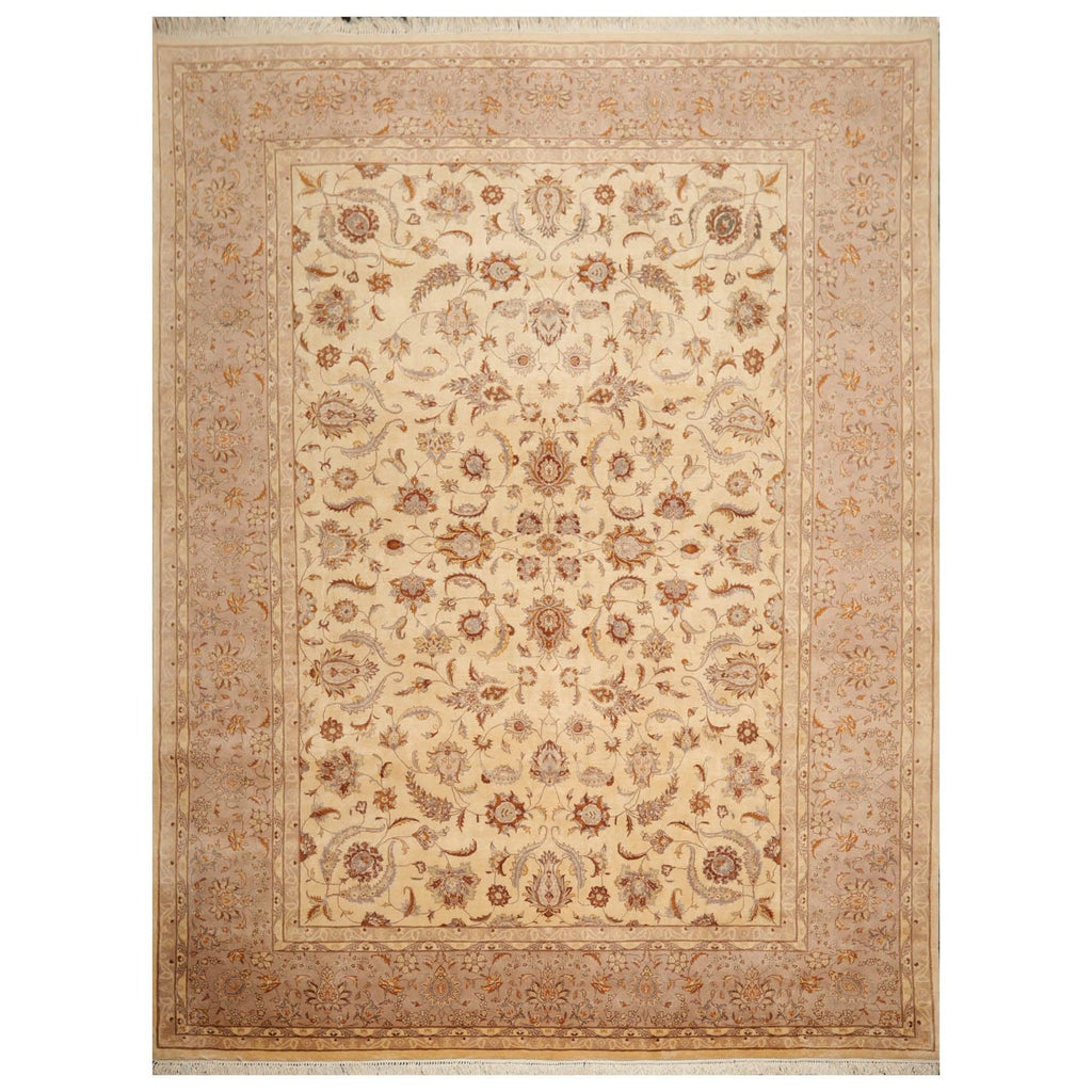Cosmopolitan and sophisticated in look, the rug has been hand crafted by artisans to a flawless composition. The main field comprising highly stylized floral and botanical elements is encompassed by a handsome multi-band border. The design of the border compliments the inner field and adds gentle grandeur to the artful composition of the rug. This rug representing an illustrious legacy of exquisite artistry and intricate craftsmanship is primed to add visual glamor and class to its surroundings. Its soft texture and timeless design make it ideal to enhance any space where it is placed.