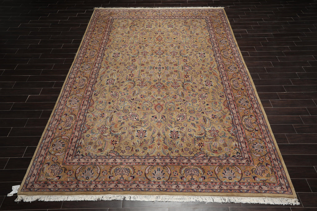 Story Behind the Art Like many other Persian rugs, Kashan rugs draw their name from the city of their origins, Kashan in Iran. Known for their tight weave and superior craftsmanship, Kashan rugs feature arabesques and flower-stems, palmettos, rosettes, blossom and leaf motifs in very dense patterns of endless or centralized repeats of floral ornamentation. A central medallion with pendant systems enhanced by corner spandrels and repeating floral motifs completes the design. During the 16th century, master weavers and dyers were brought to the area of modern-day Pakistan and India to begin producing very high-quality Kashan design rugs even surpassing some produced in Persia