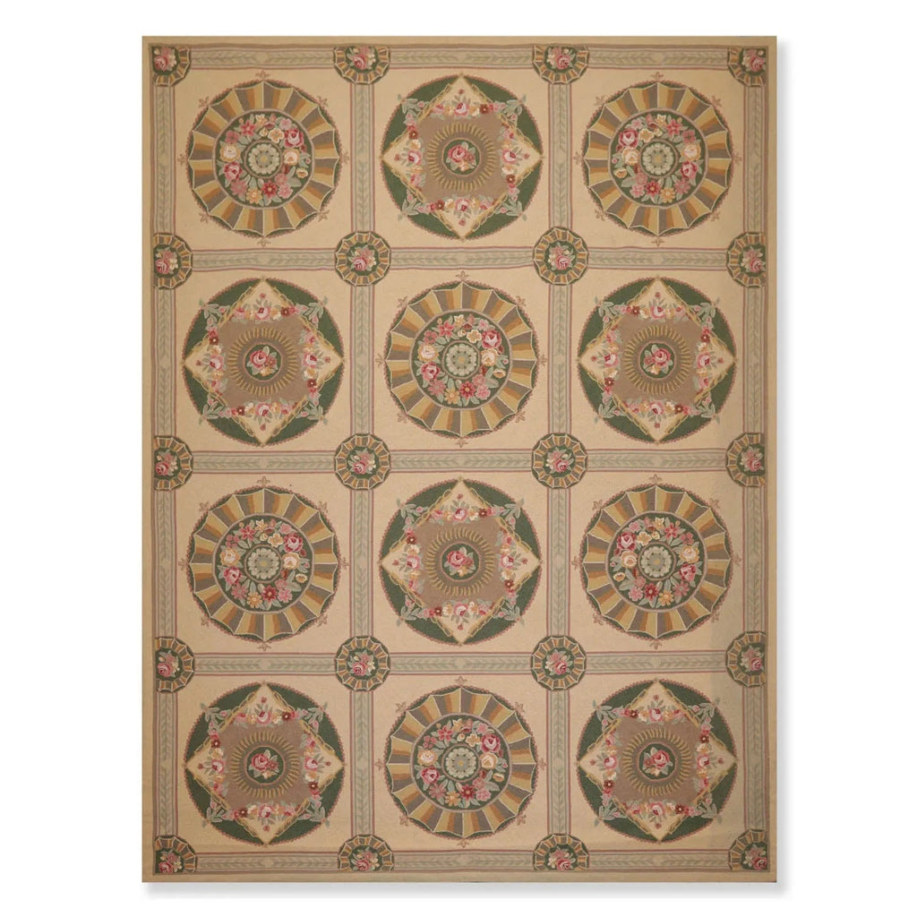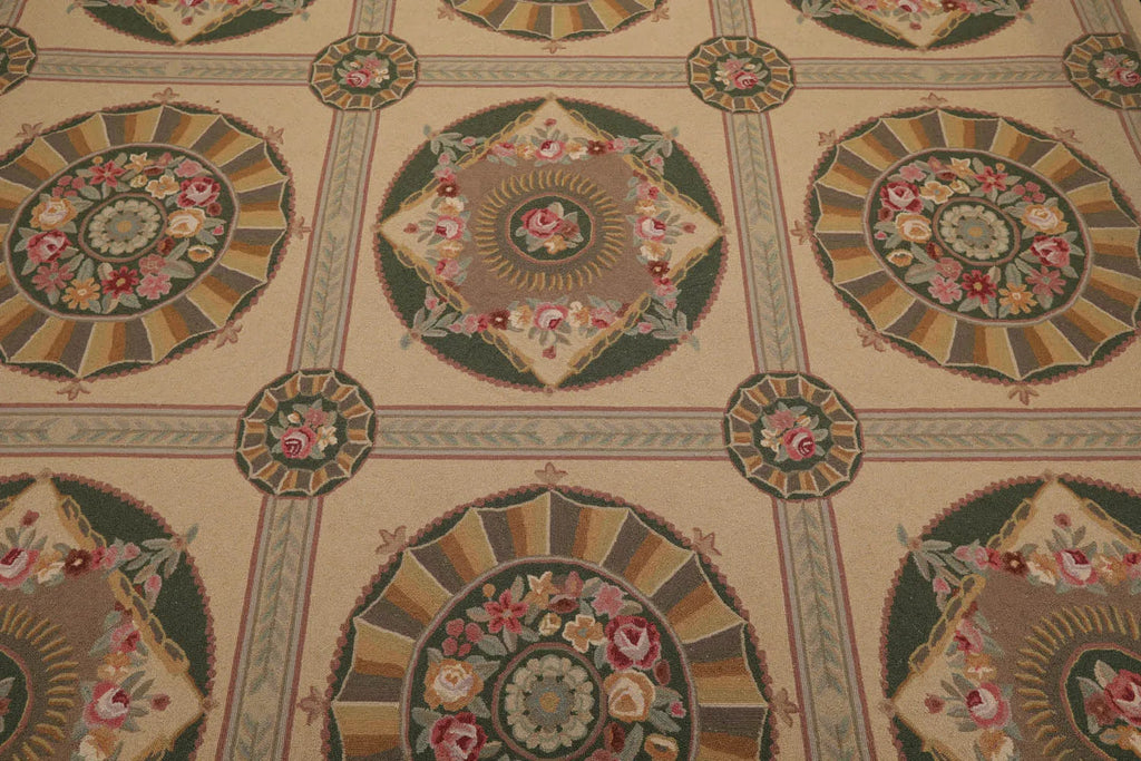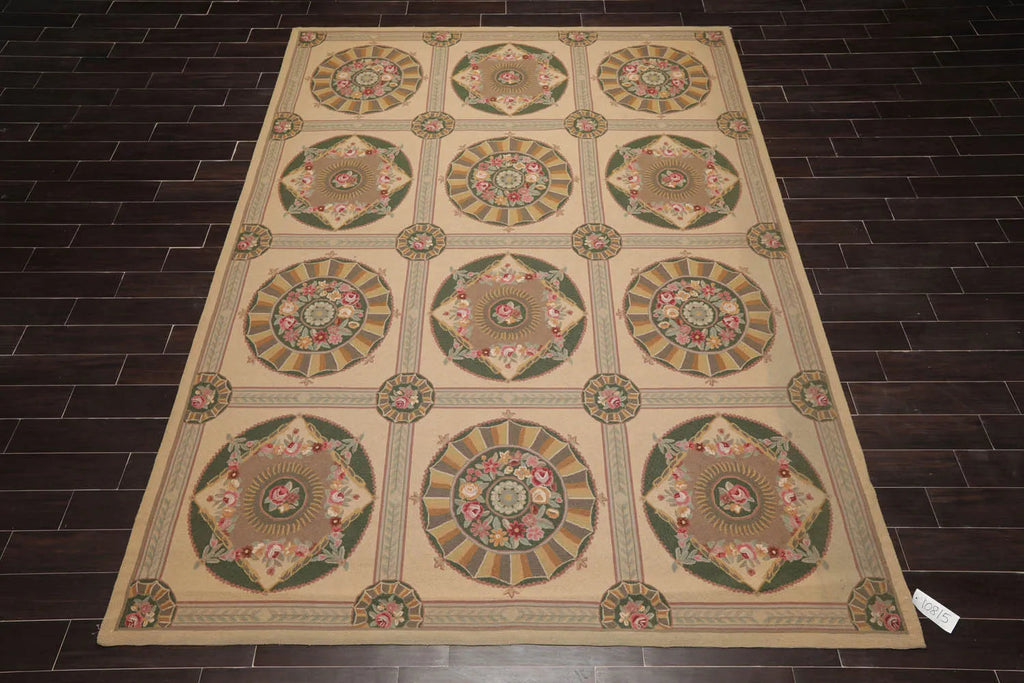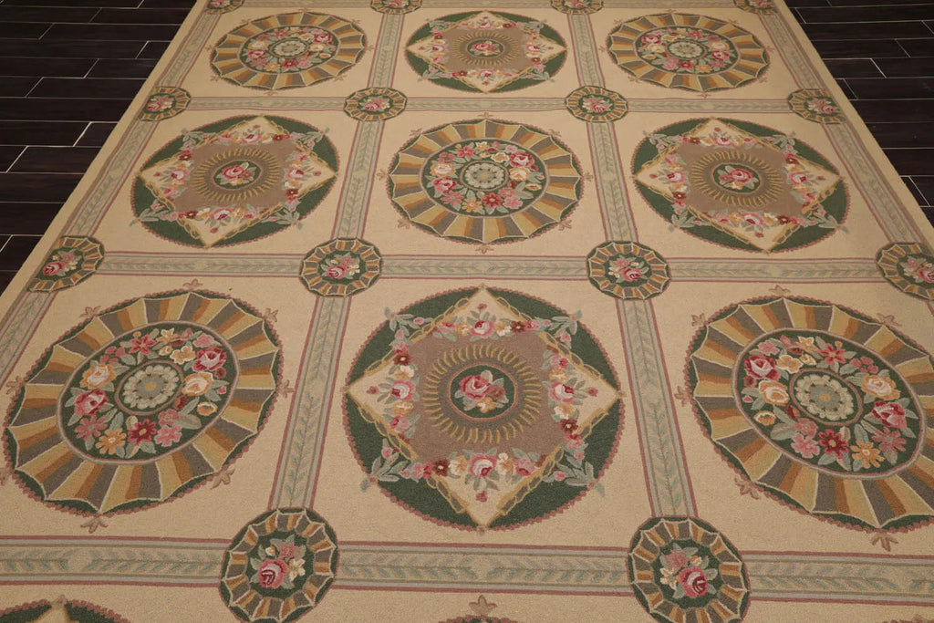 This is a beautiful Beige, Tan, Taupe, Brown, Rust, Rose, Blue, Gold, Multi Color French Aubusson Hand Hooked Oriental Area Rug 100% Wool Rug. Its elegant style is easy to decorate with and perfect for living room, dining room, bed room or anywhere in the residence or office.