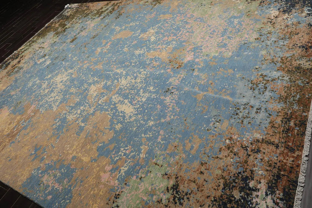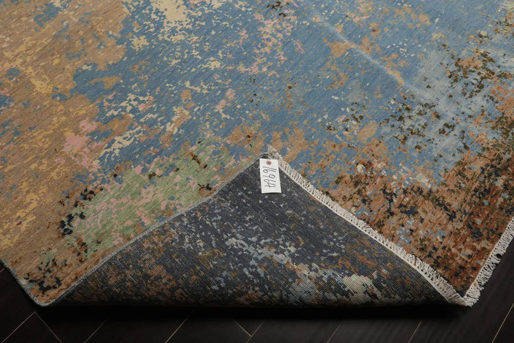 9x12 Blue, Beige Hand Knotted 100% Wool Sherpa Design Tibetan Oriental Area Rug