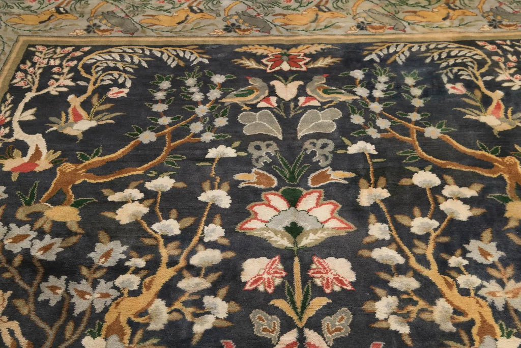 9x12 Charcoal Antique Spanish Wool Pile with Silk Foundation Hand Knotted Area Rug