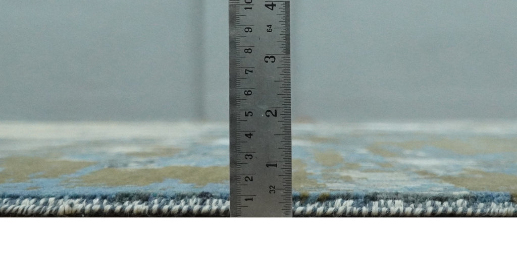 9x12 Fine Hand Knotted Beige and Blue Modern Abstract Style Antique Wool and Silk Area Rug | AGR31