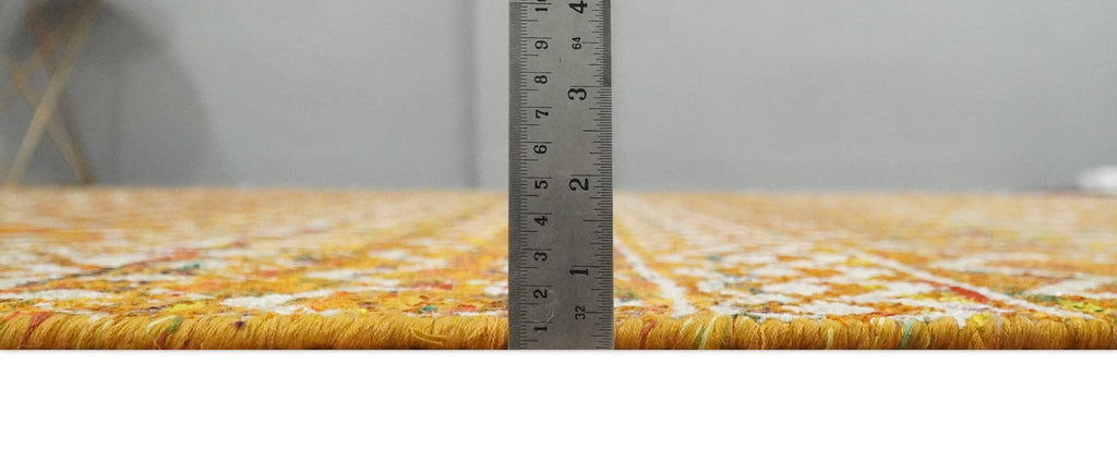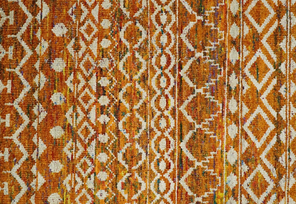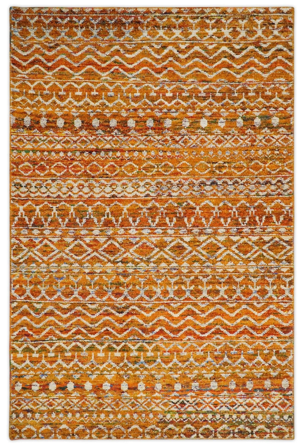 This Hand-Knotted Rug has been Made with Handspun Recycled Silk. The beautiful colors of the rug and the modern design of the rug complete your space without making it look busy. Hand-Knotted rugs are durable and can last for decades if treated right.