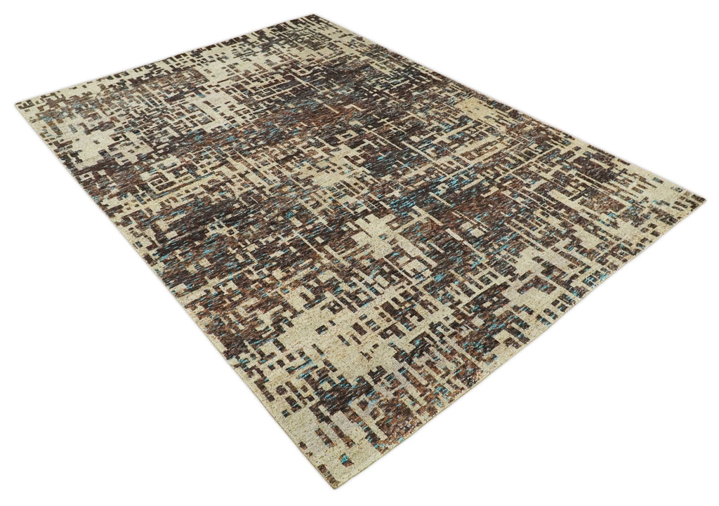 This Hand-Knotted Rug has been Made with Handspun Recycled Silk. The beautiful colors of the rug and the modern design of the rug complete your space without making it look busy. Hand-Knotted rugs are durable and can last for decades if treated right.