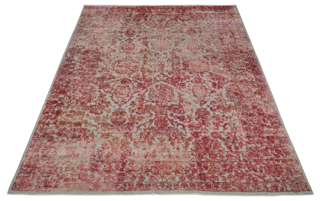 This 9x12 hand-knotted rug features a classic antique design with a modern subtle twist. Constructed from a blend of premium wool and silk, the Peach Modern Carved Pattern gives off a unique, intricate look, perfect for any living space.