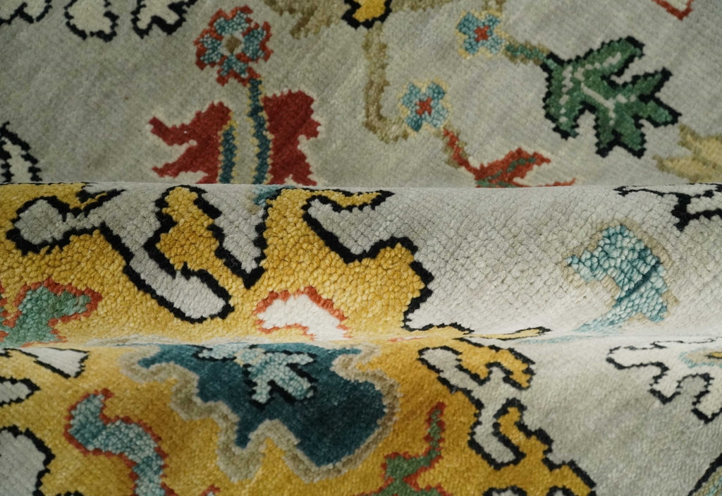 This Modern Silver, Ivory and Beige vibrant Colorful Hand knotted Traditional Oushak wool Rug is the perfect addition to any living space. Its striking silver, ivory and beige colour scheme will add a vibrant, yet subtle, touch to any room. Its hand knotted wool ensures this rug is strong and durable for years of use.