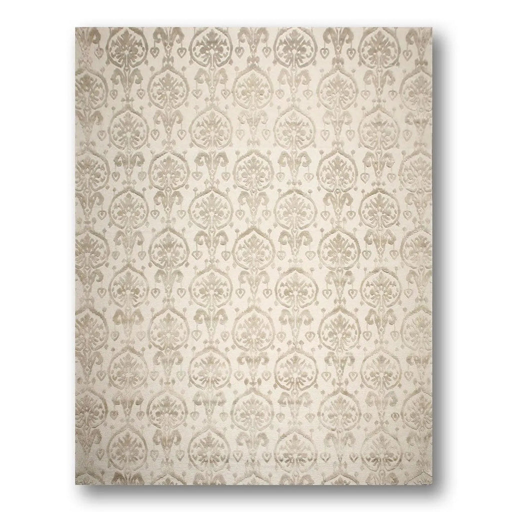 This is a beautiful 9'x12' Olive & Beige Color Handmade Tibetan Ikat Area Rug Wool & Bamboo Silk . Its elegant style is easy to decorate with and perfect for living room, dining room, bed room or anywhere in the residence and office.