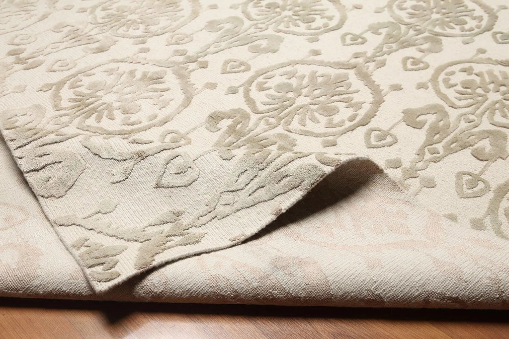 9x12 Olive & Beige Color Hand Knotted Tibetan Ikat Wool & Bamboo Silk Oriental Area Rug