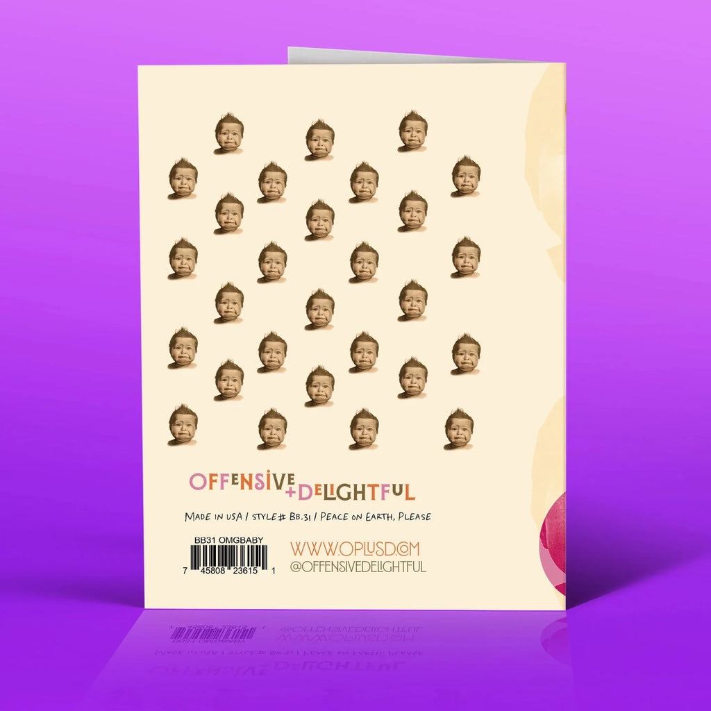 Card reads: "A BABY, Oh shit, good luck with that?"