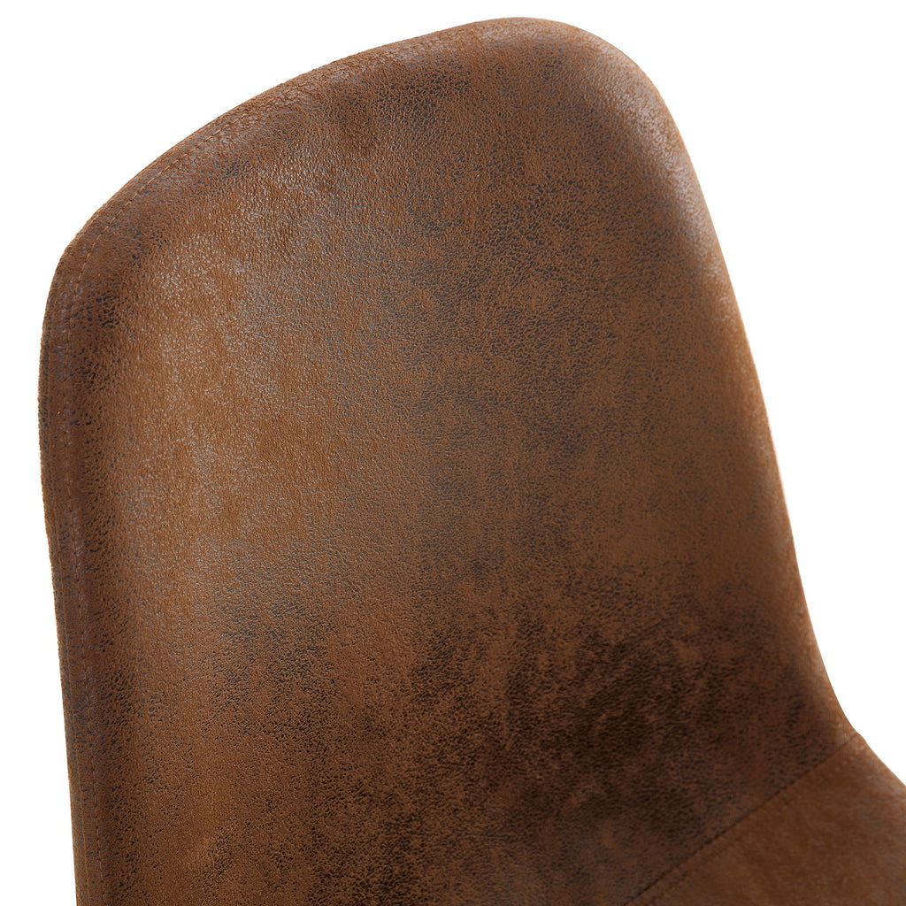 • A set of 4 modern medieval style restaurant brown cushioned chairs with suede backrests and black metal legs