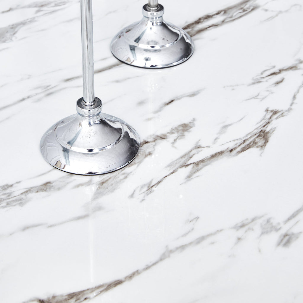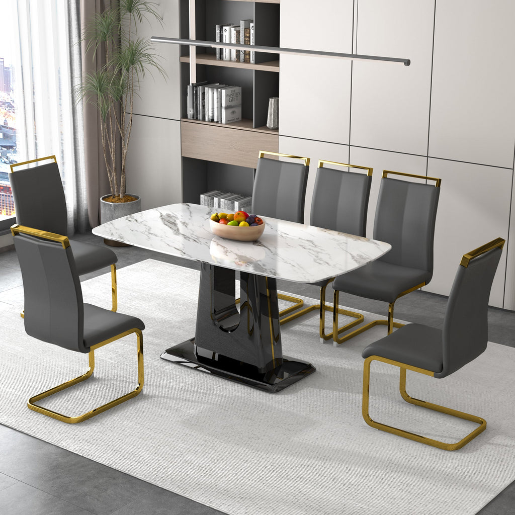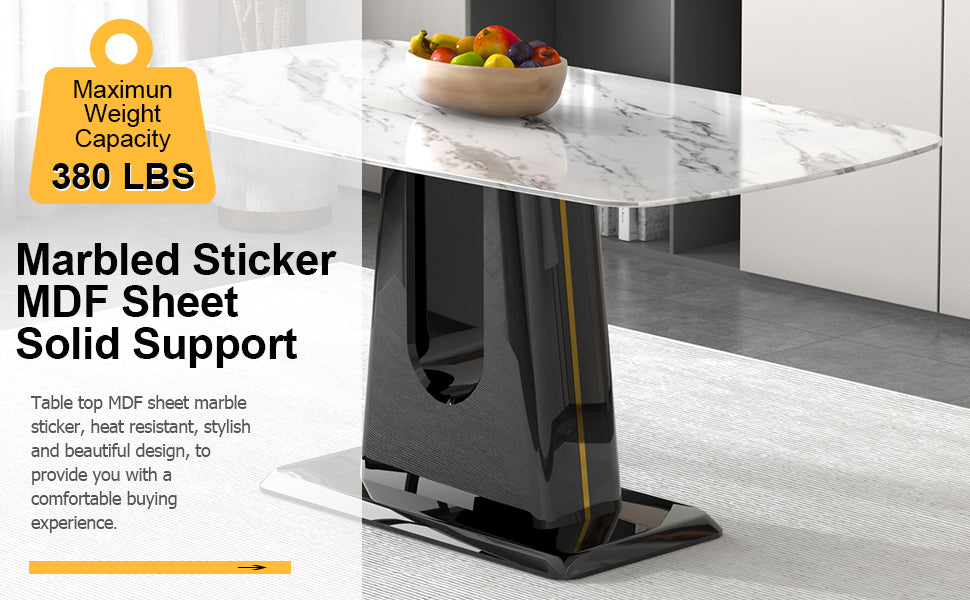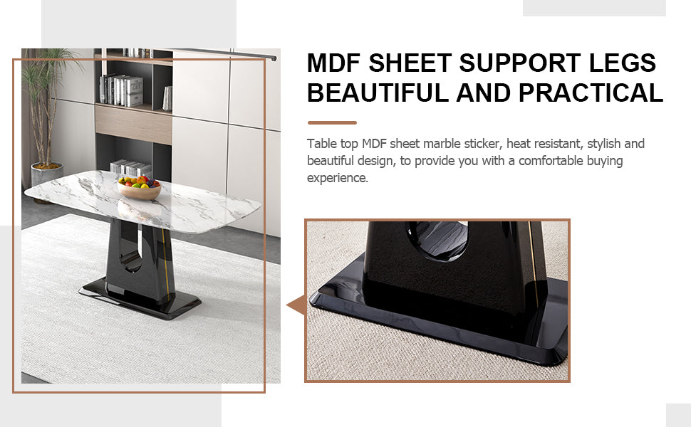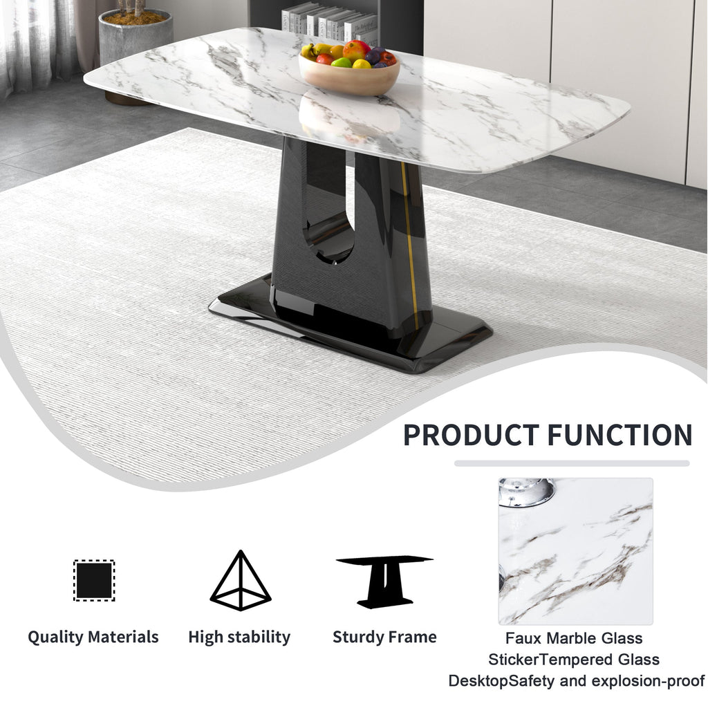 A modern, minimalist, and luxurious dining table with a white imitation marble tabletop and MDF legs with U-shaped brackets. Tables in restaurants and living rooms 63"x35.4"x30 F-U