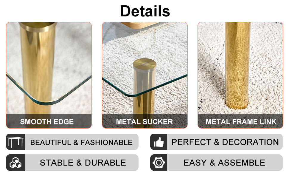 - The tabletop is expertly crafted from sturdy and durable tempered glass, easy to wipe clean with a damp cloth.
