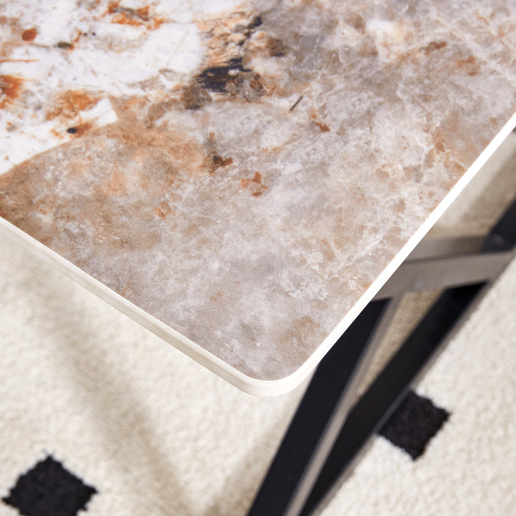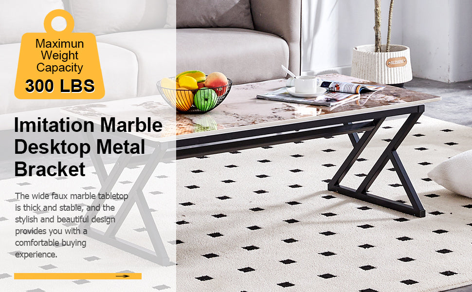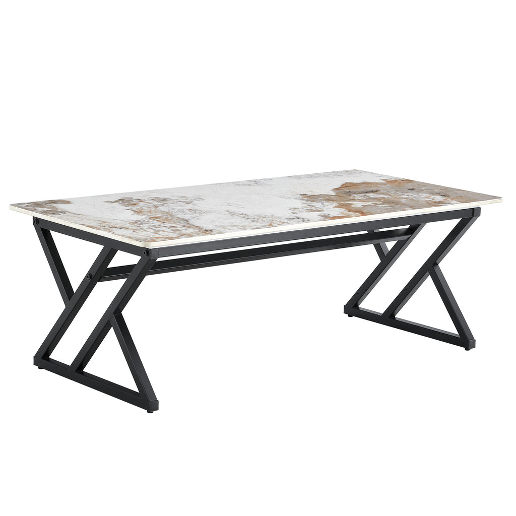 A modern minimalist style marble patterned coffee table with black metal legs. Computer desk. Game table. Tea table. CT-XX