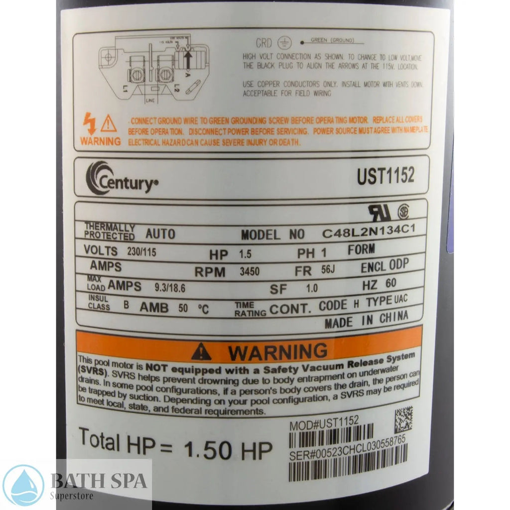 A.O. Smith (AOS) Century 1.5 HP Motor [56J] (ST1152)