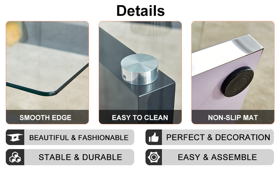 - Unique table leg design: Tempered glass tabletop and MDF table legs bring a modern theme to the indoor space.