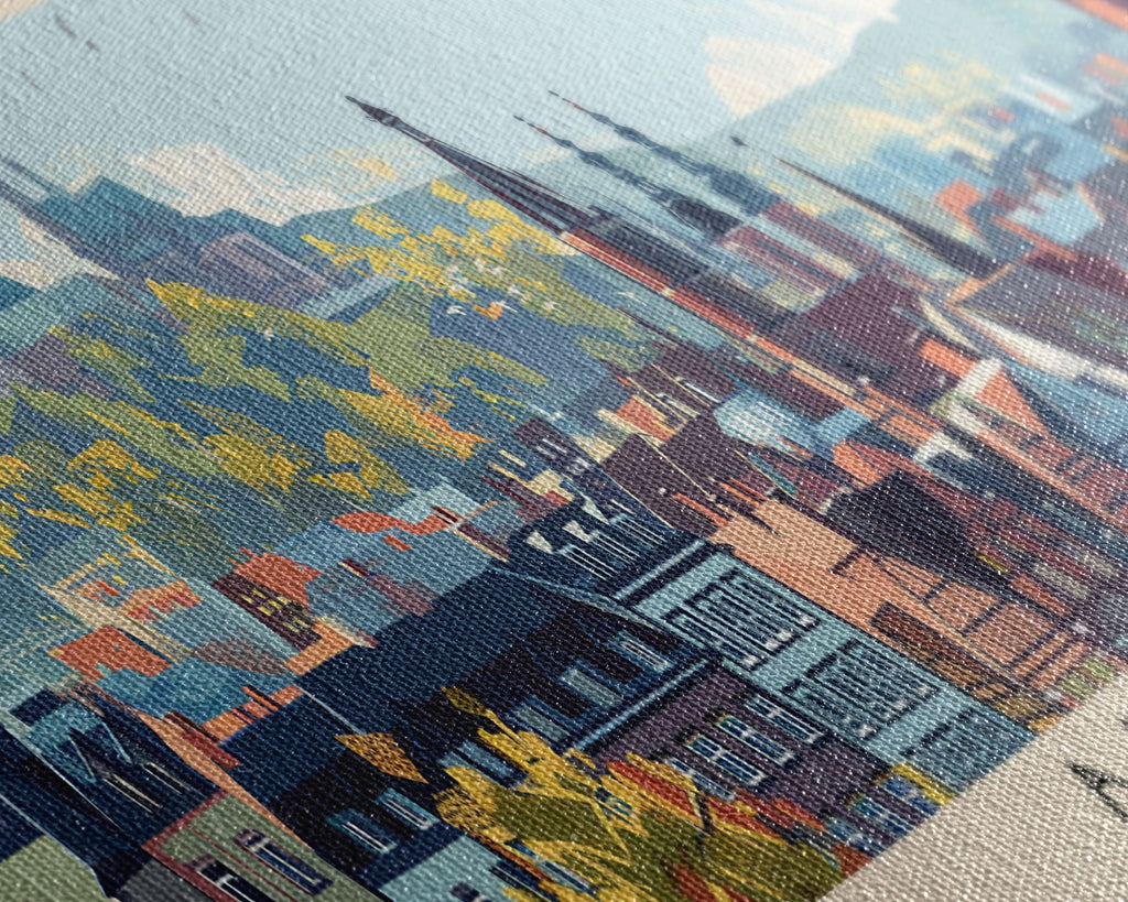 Aachen Germany Panoramic Travel Poster, Framed Canvas Print or Metal Wall Art, Travel Art, Home Decor, Panoramic Painting, Midcentury Art