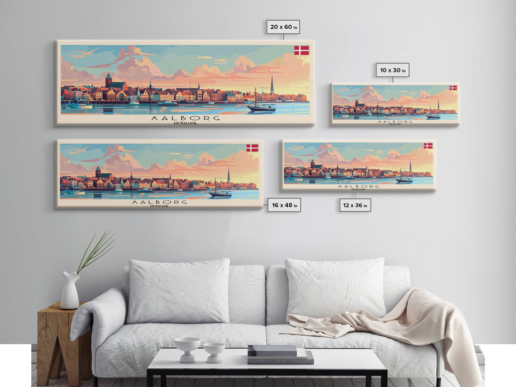 Aalborg Denmark Wall Art, Panoramic Travel Poster, Panoramic Framed Canvas Print, City Wall Art, Wall Hanging Home Decor, Travel Art