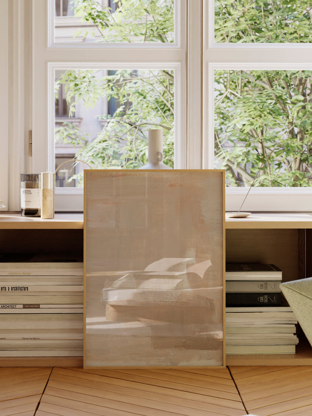 A fluent movement of brushstrokes and subtle texture give this piece a dreamy, tranquil atmosphere. The soft hues of the Abstract Blush evoke a light, calming aura that fits perfectly in every space.