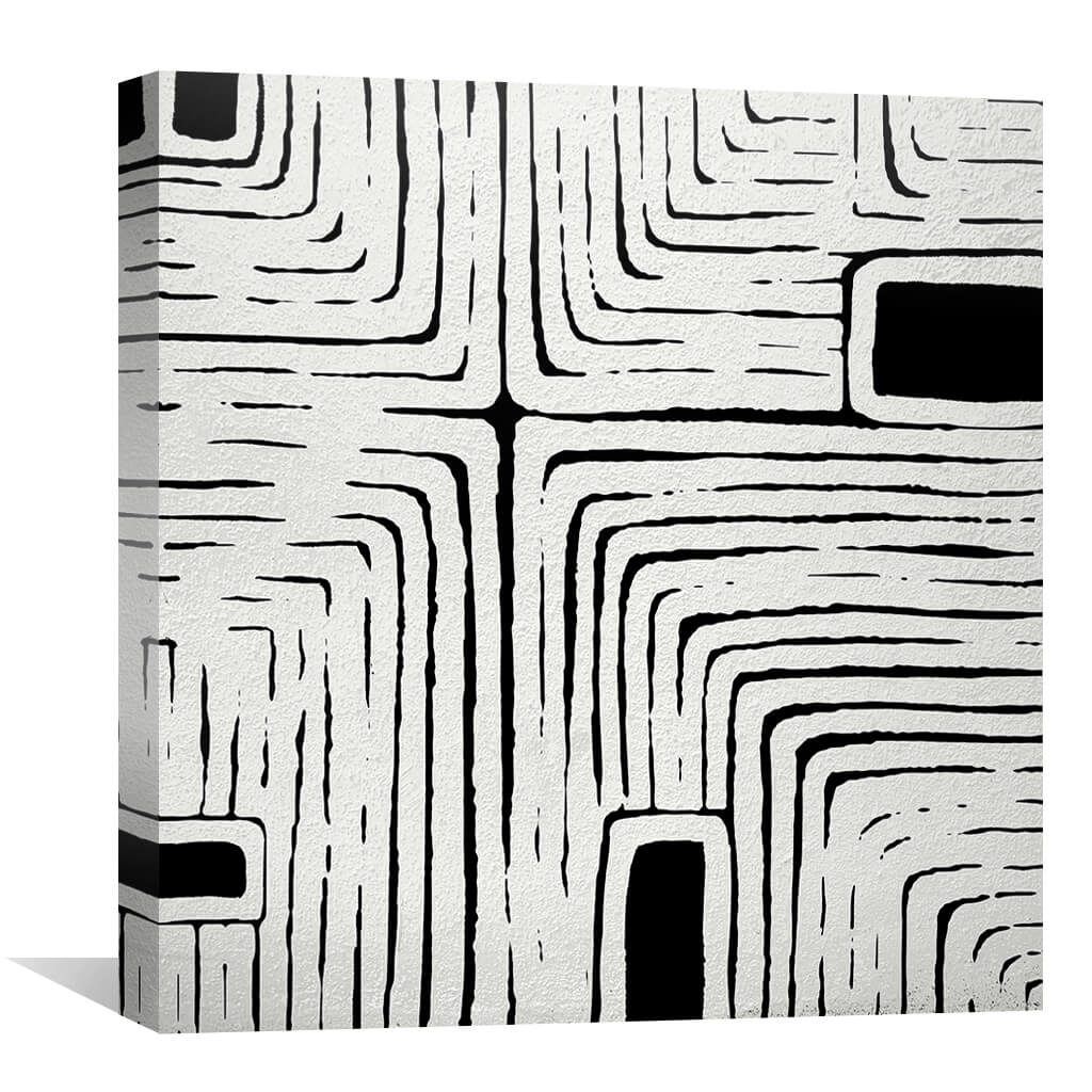 Give any open wall in your home a tasteful touch of glamour with this black and white striped canvas wall art. Featuring an abstract, maze design this black and white abstract canvas art will complement most decors with its neutral tones.