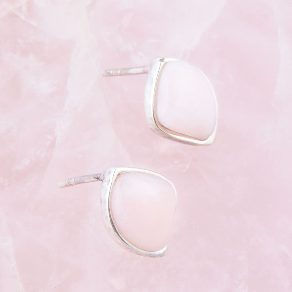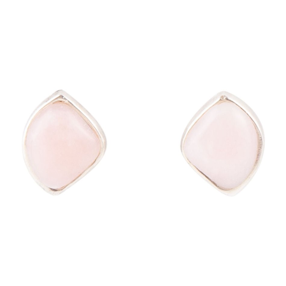 These handcrafted Abstract Pink Opal Post Earrings are sure to bring subtle sophistication to any look. Crafted with genuine pink opal and sterling silver, each earring measures .45" x .3"; and with a combined weight of .045 ounces, these earrings will make a tasteful statement with any outfit.