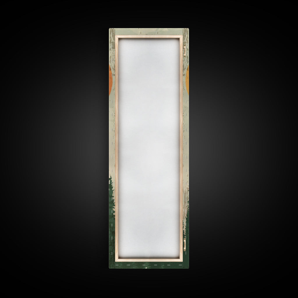 Abstract Sun Over Forest Silhouette Earth Tones Skinny Art Tall Art Framed Canvas Print Japanese Style Art Ukiyo-e Art Wood Block Print Minimalist