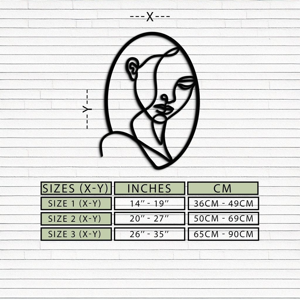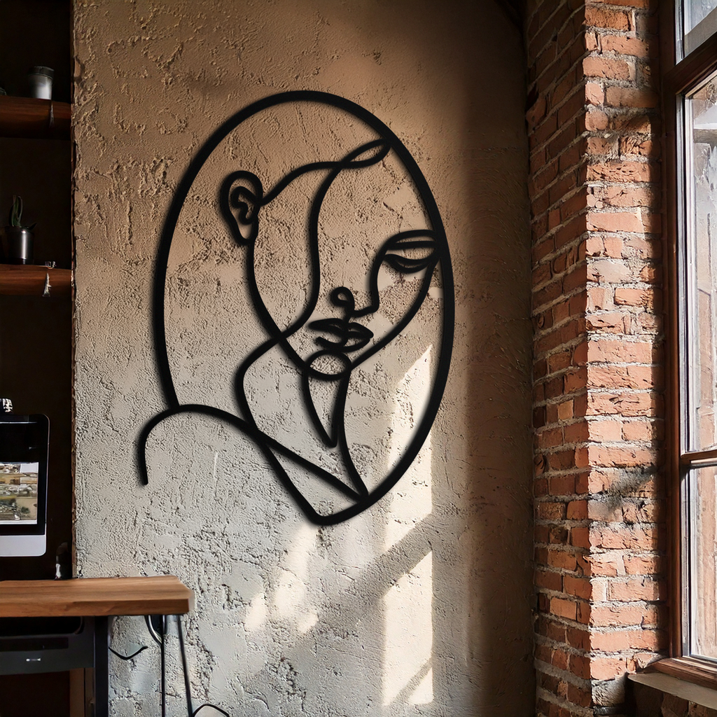 Bring elegance and contemporary style to your interior with this Abstract Woman Face Line Art. The oval-framed minimalist silhouette captures emotional depth with a single flowing line. Crafted from 1.5 mm premium metal and finished in sleek matte black electrostatic paint, it offers both durability and artistic expression. Ideal for modern living rooms, bedrooms, offices, or galleries.