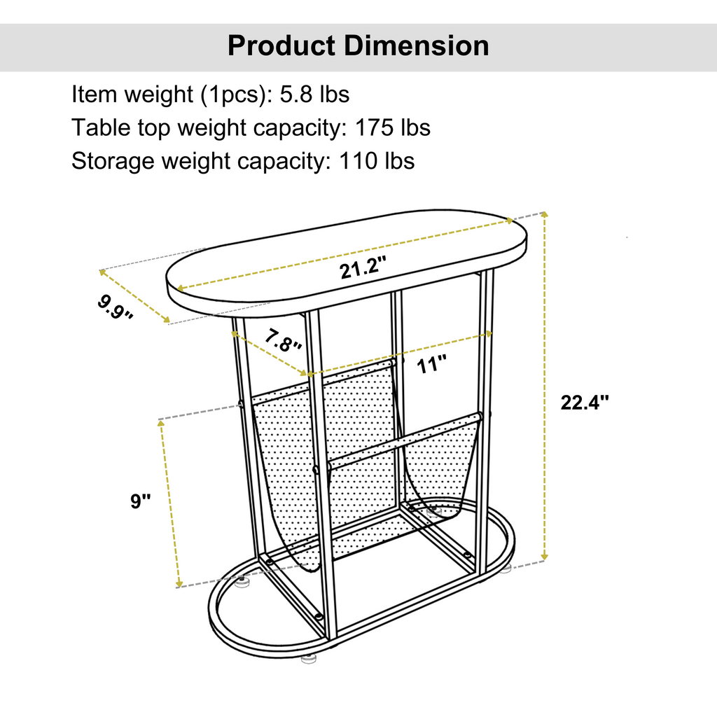 Attracted at first sight by its simplicity and classicism, the oval side table brings pure beauty to your home. With a compact design of 21.2" x 9.9" x 22.4", this storage end table is suitable for most small spaces in your home from the coffee table next to the sofa, the entrance area, the night stand in the bedroom to next to the armchair on the porch, all of them blend together to create a convenient and cozy space. The oval table top is made from acacia wood combined with a powder-coated steel frame for sturdiness and durability. A magazine organizer is designed in the middle, a convenient and modern storage area for this coffee stand table.