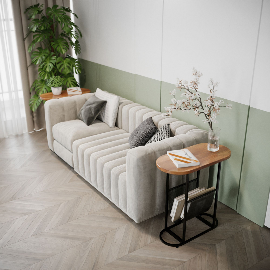 • Lightweight Sidetable - With item weight of about 5.8 lbs you can easily move it around your home. Lightweight but with high bearing capacity of acacia table top up to 175 lbs. A magazine organizer is designed in the middle, a convenient and modern storage area with high weight capacity upto 110 lbs.