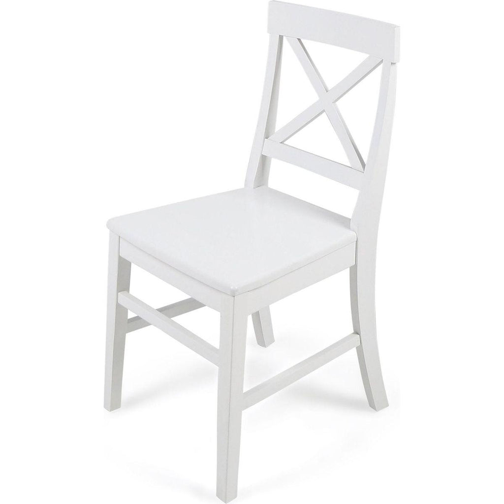 - Includes: two (2) dining chairs. Material: Acacia wood. Finish: White