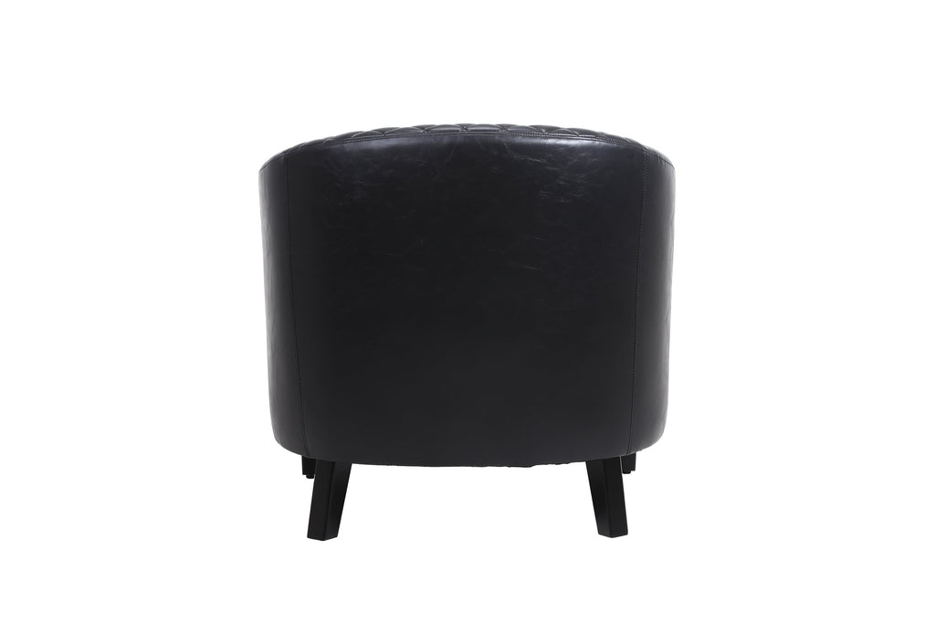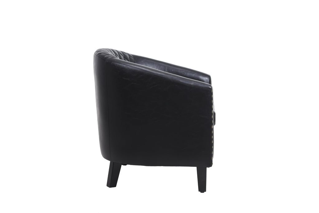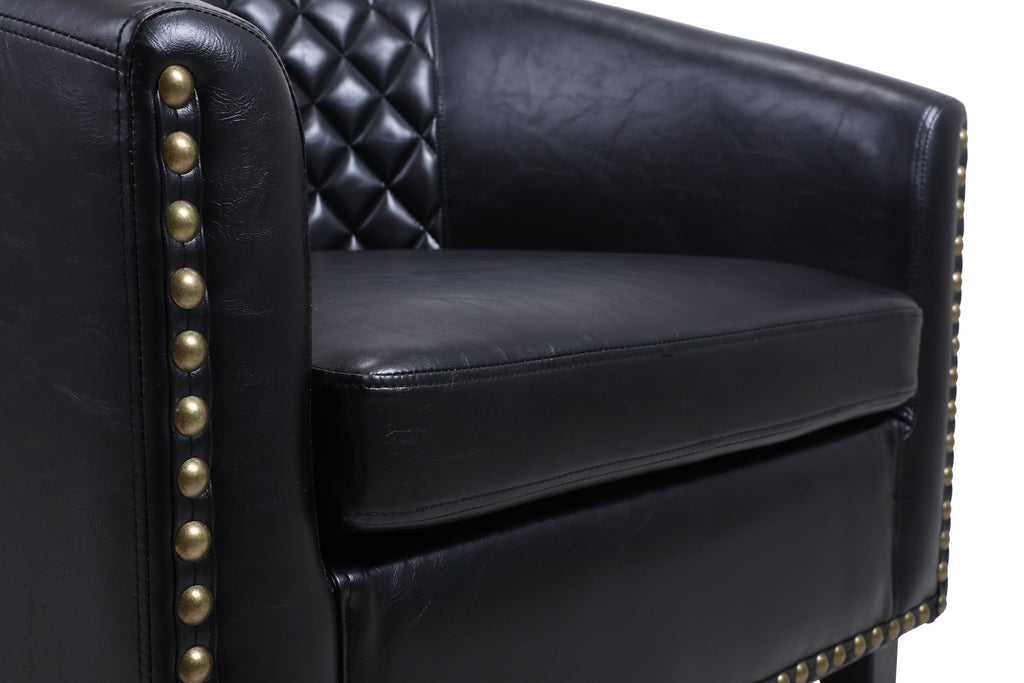 accent Barrel chair living room chair with nailheads and solid wood legs Black pu leather