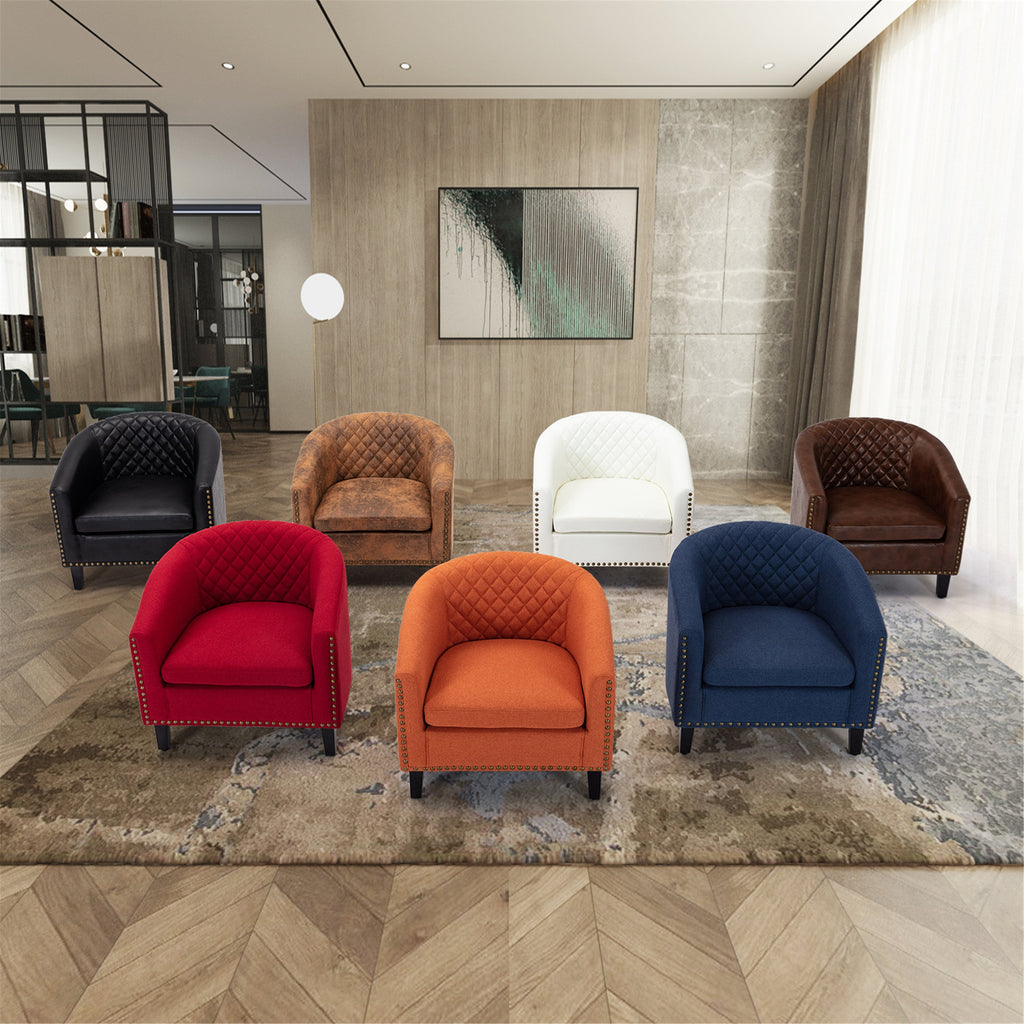 With this leisure Barrel chair , it is easy to decorate your living room or bedroom to be more beautiful and stylish. Curved edges, padded with thick foam and upholstered with high-quality PU leather , you can seat yourself in it comfortably for relaxation.