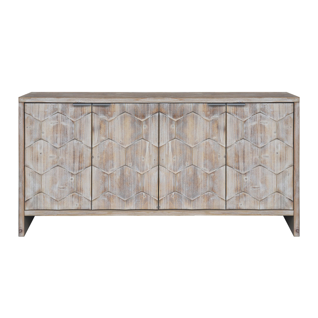 This cabinet is designed with minimalist style along with a stable structure to make a unique statement, which provides powerful practicality rather than a household adornment. With plenty of space to offer, utilize the casual four-door cabinet featuring two-tier storage to minimize clutter while keeping select essentials within easy reach, or display your favorite décor on the spacious upper counter. With decorative fluted doors add beauty and enhances the artistic sense of the entire home.