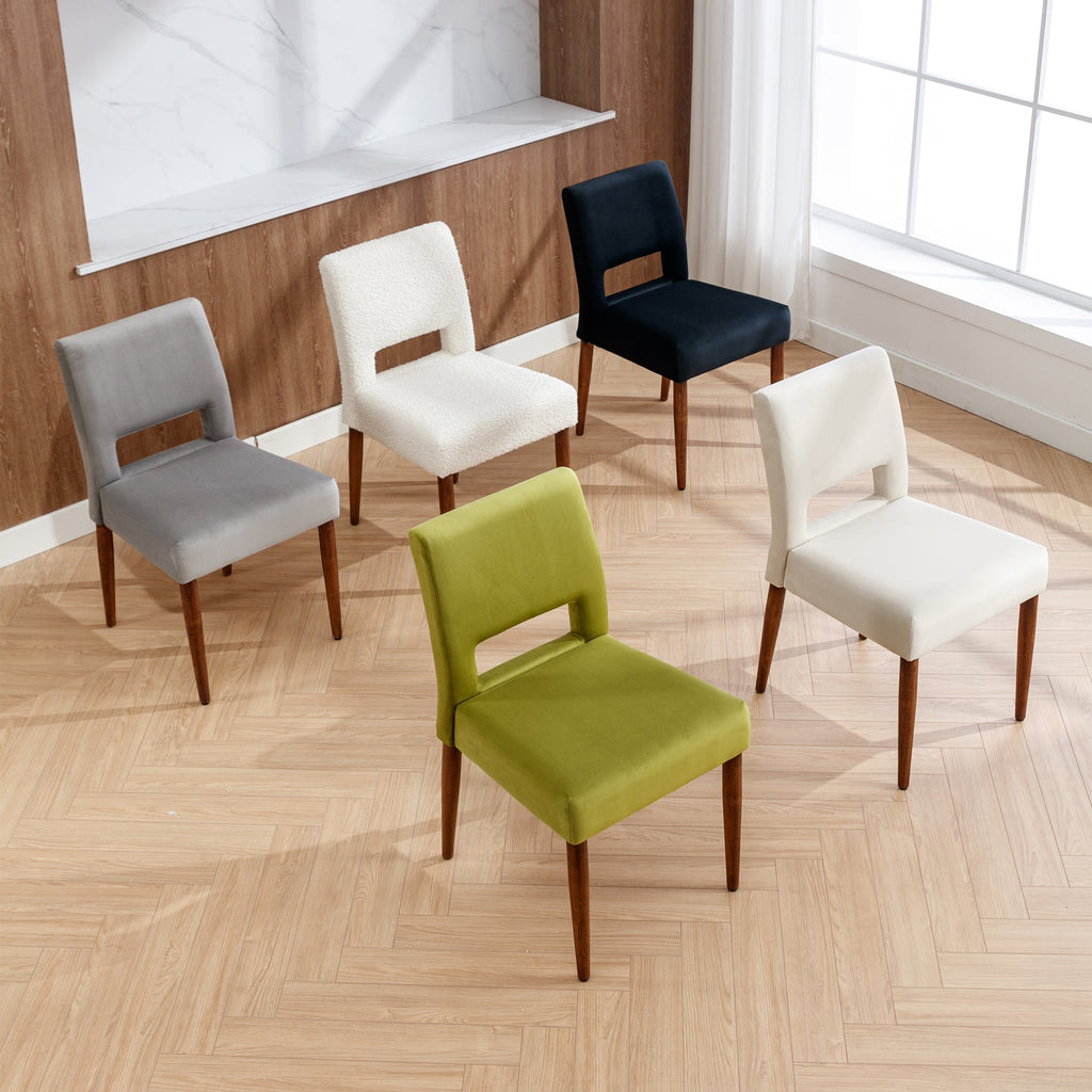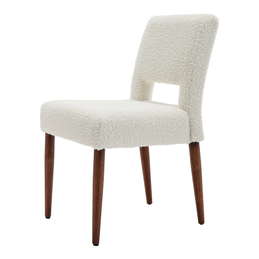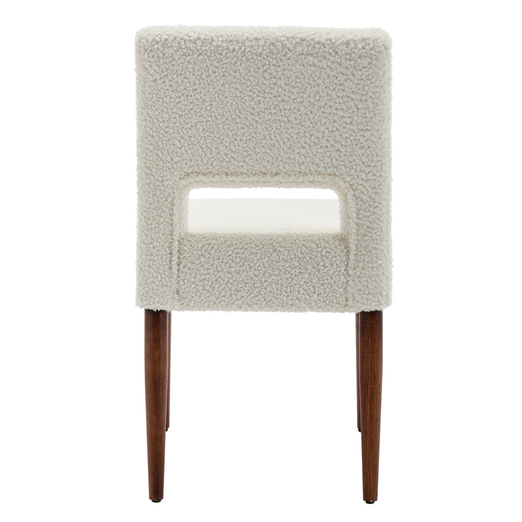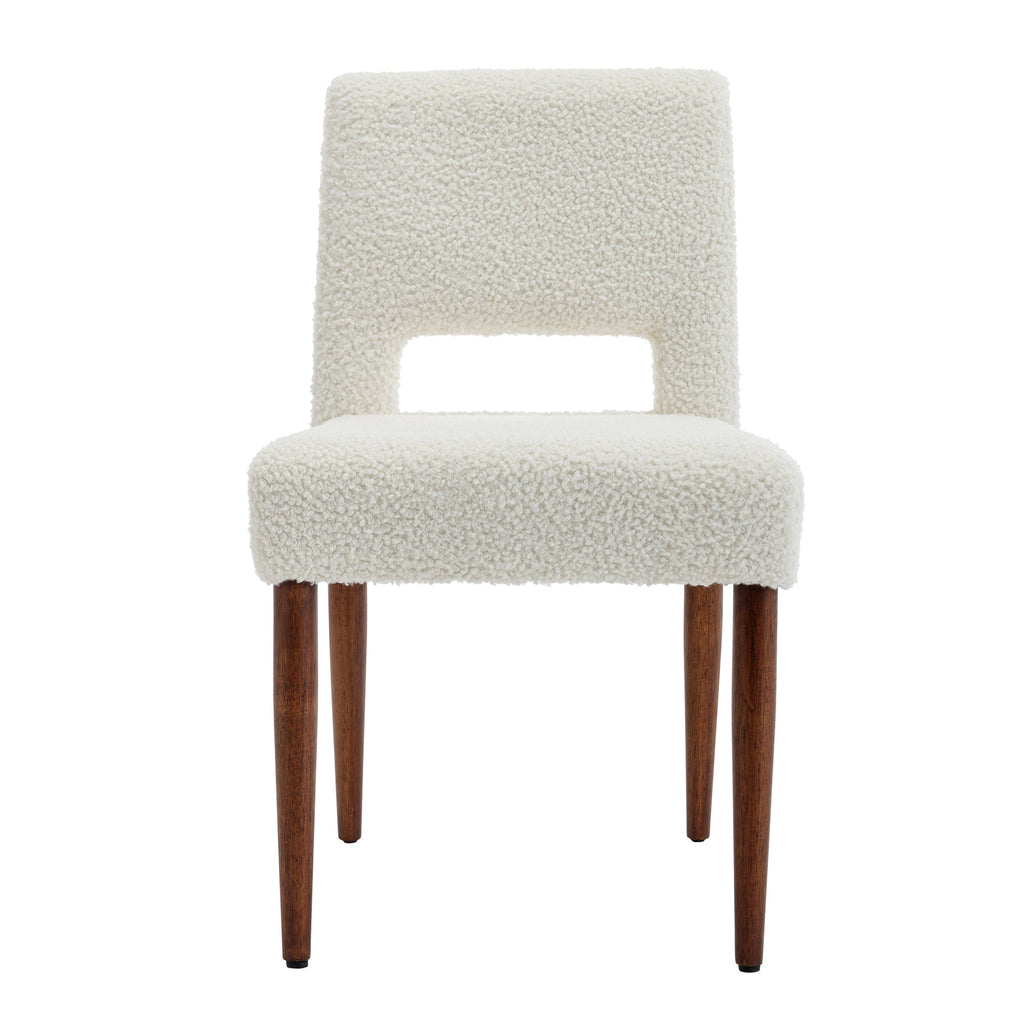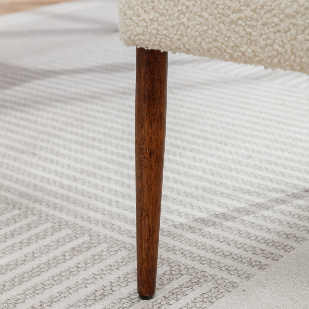 - Made with premium boucle fabric, which is very delicate to touch and has no irritation to people with sensitive skin. Solid wood legs with a walnut coating make the whole home chair more deluxe. Weight capacity holds up to 250 LBS.