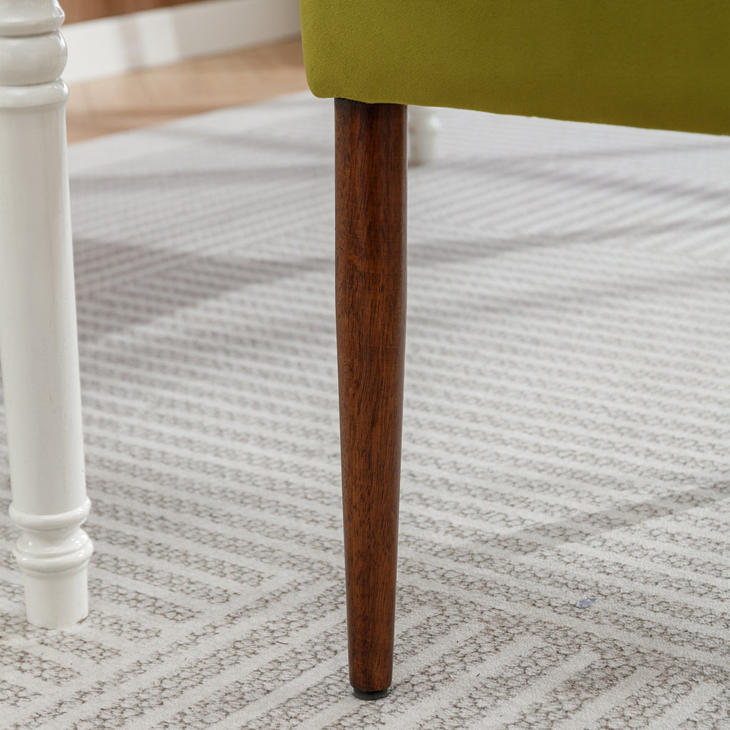 - Made with premium velvet fabric, which is very delicate to touch and has no irritation to people with sensitive skin. Solid wood legs with a walnut coating make the whole home chair more deluxe. Weight capacity holds up to 250 LBS.