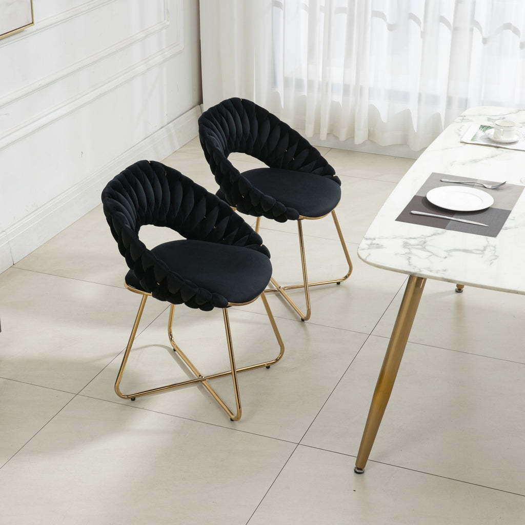 Accent Chairs Set of 2, Velvet Side Chairs with Gold Legs, Mid-Century Upholstered Dining Chairs for Living Room, Kitchen, Bedroom, Beauty Room