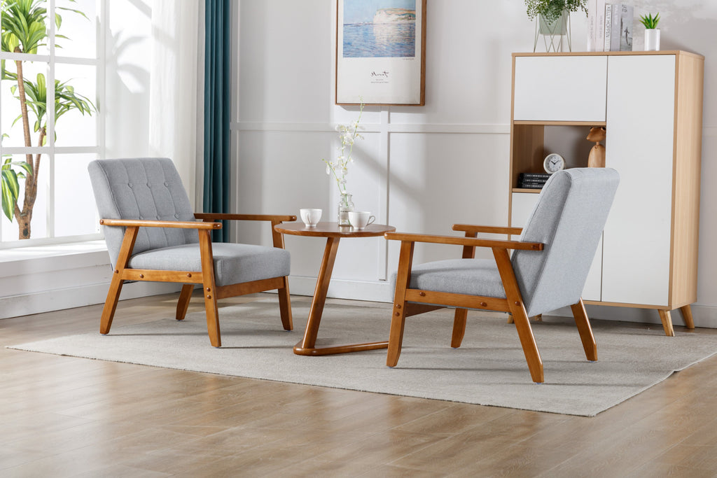 Mid-Century Retro Modern upholstered accent chair, soft fabric and solid wood armrests, combined with button-tufted design, perfect addition to the living room, bedroom, waiting room, guest room