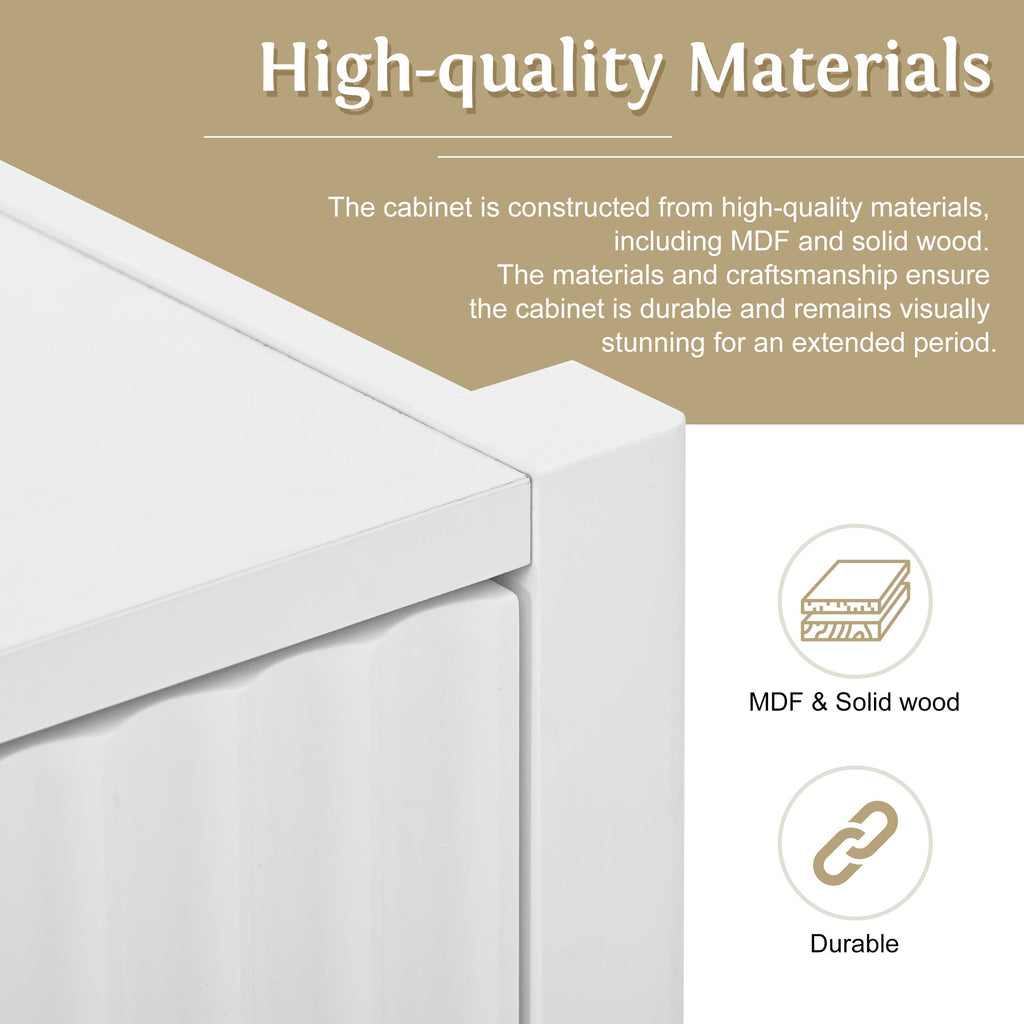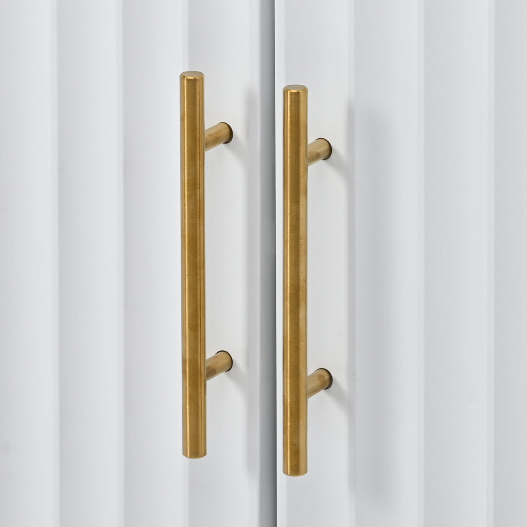 The combination of wave-patterned design and golden handles on the cabinet doors give it a unique and fashionable appearance.