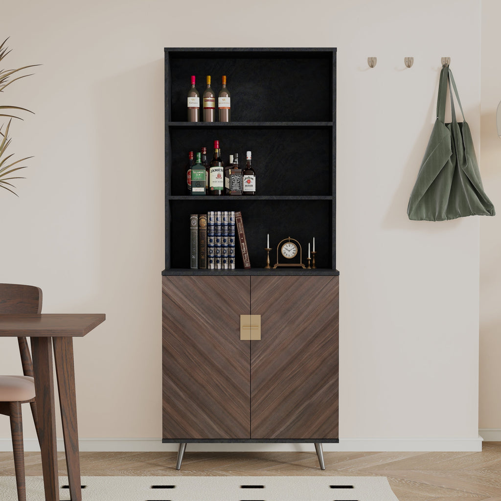 - [Multifunctional Storage] With ample storage space, including cabinets and shelves, this small bar cabinet provides a convenient solution for organizing and storing various items.