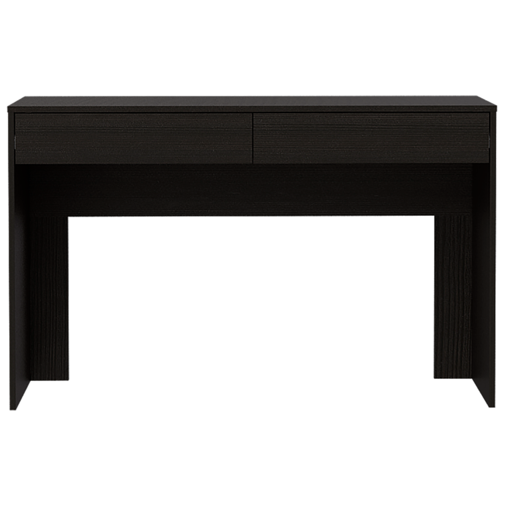 The Laska computer desk is everything you need to study or work from home. With a height of 29.4" inches will give you a fair share of legroom; A spacious 47.3" W table top will provide the space to work confortably. This desk is perfect and has a straightforward design for spaces with little room available. It features two spacious drawer to help you keep your items organized and handy whenever you may need them. Made with particle board in Dark black