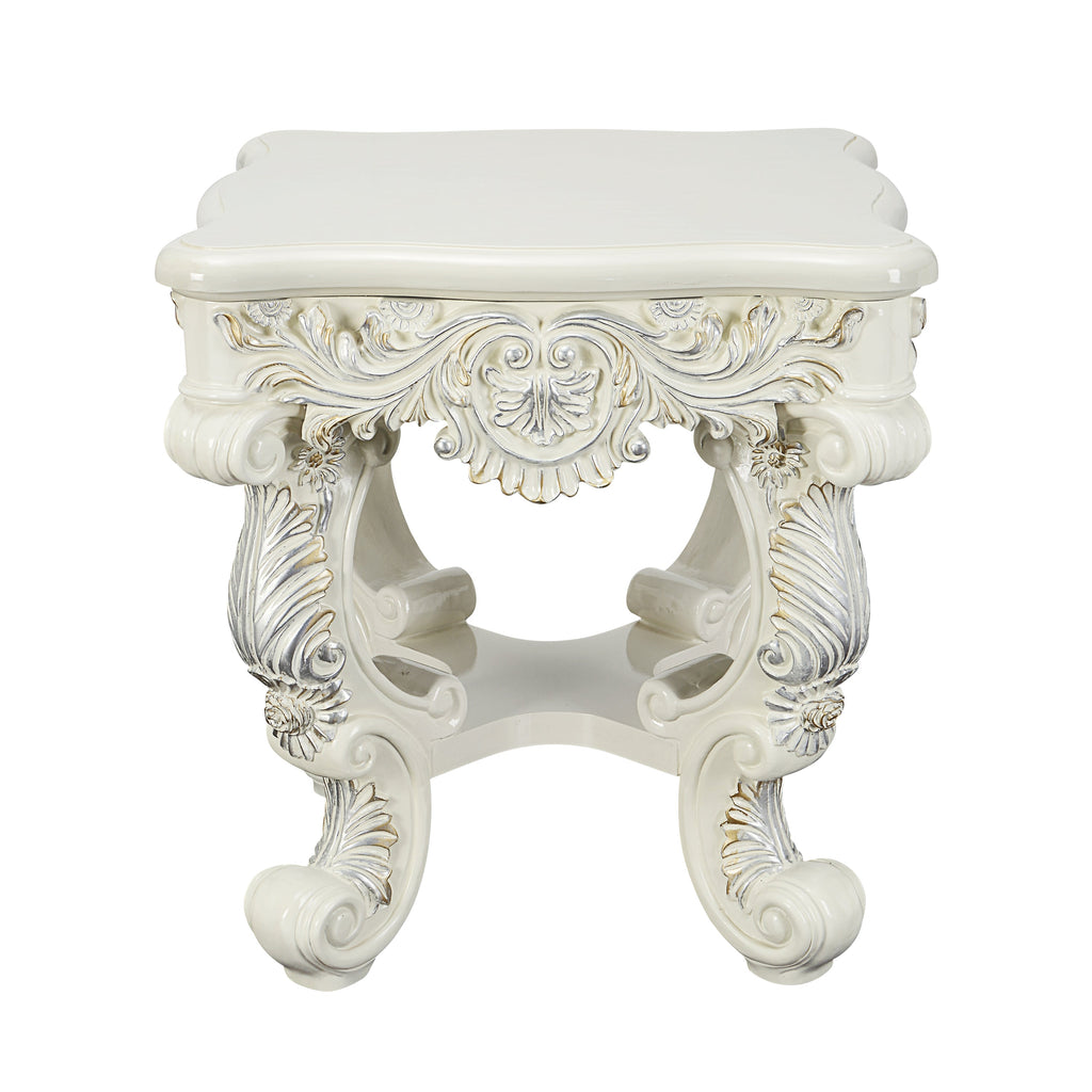 The Persian influence in the conceptualization and presentation of the Sornina coffee table makes it a timeless creation. Featuring a sturdy wooden construction, this console table features a round tabletop that is followed by intricate detailing around the apron and on the carvings of the curved legs supporting the base. Finished in silver and gold to accentuate the detailing.